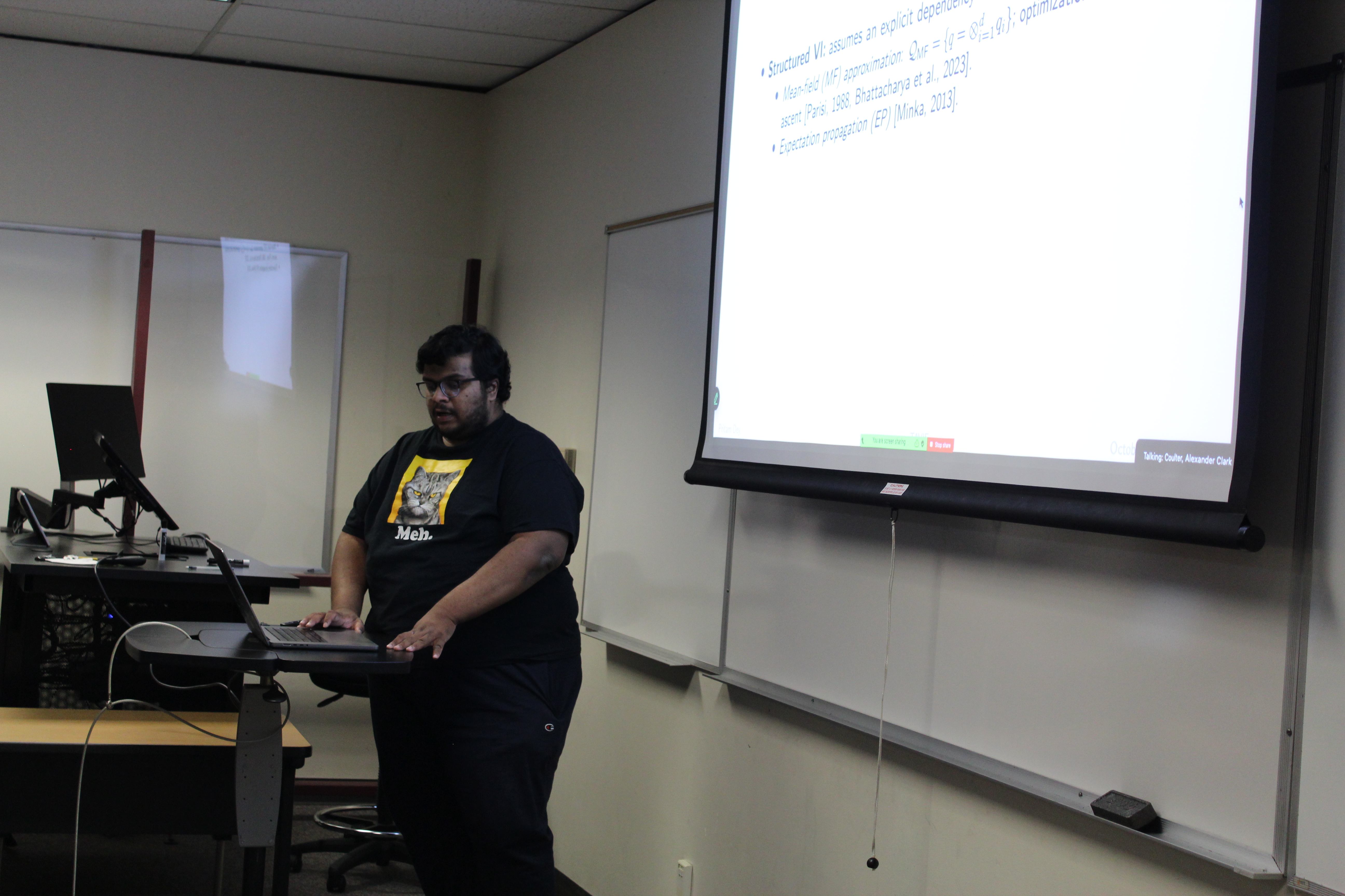 Variational inference (VI) has become a cornerstone of scalable Bayesian computation, yet many approaches rely on model-specific tricks or the “alchemy” of black-box optimization. In this talk, I will introduce TAVIE—a Tangent Approximation Variational InferencE framework that unifies a broad class of strongly super-Gaussian likelihoods under the umbrella of tangent minorization. TAVIE replaces heuristic approximations with a principled framework offering tractable updates and novel theoretical guarantees for algorithmic convergence and non-asymptotic risk bounds. I will outline the algorithmic structure and theoretical foundations, followed by a demonstration of TAVIE’s superior performance through simulations and real data analyses.