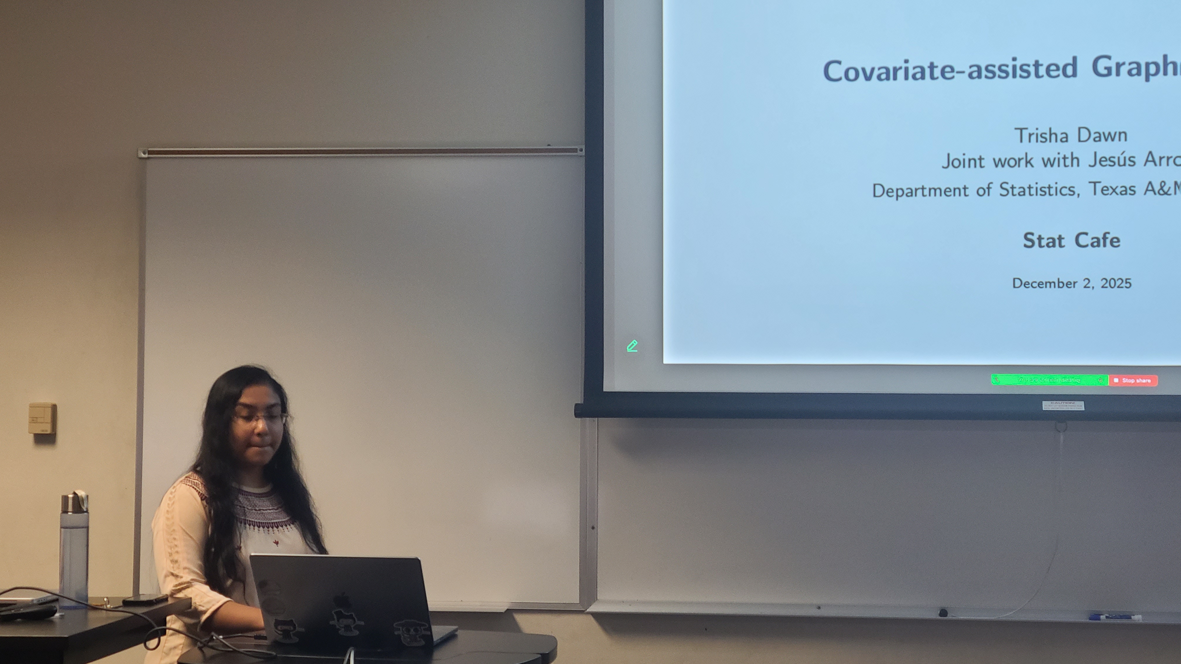 Trisha Dawn is currently a doctoral candidate at the Department of Statistics at Texas A&M University, being advised by Dr. Yang Ni and Dr. Jesus Arroyo. She received her master’s degree in Statistics from Indian Statistical Institute. Trisha’s research is broadly focused on the intersection of developing novel statistical methods and applications for causal graph learning, graph matching and change-point detection.